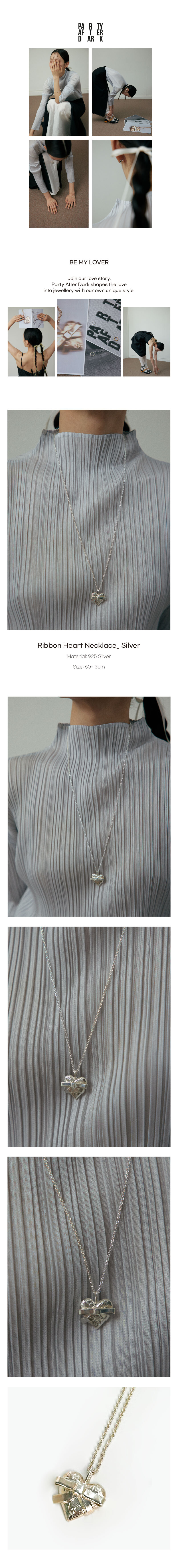Heart Ribbon Necklace_Silver